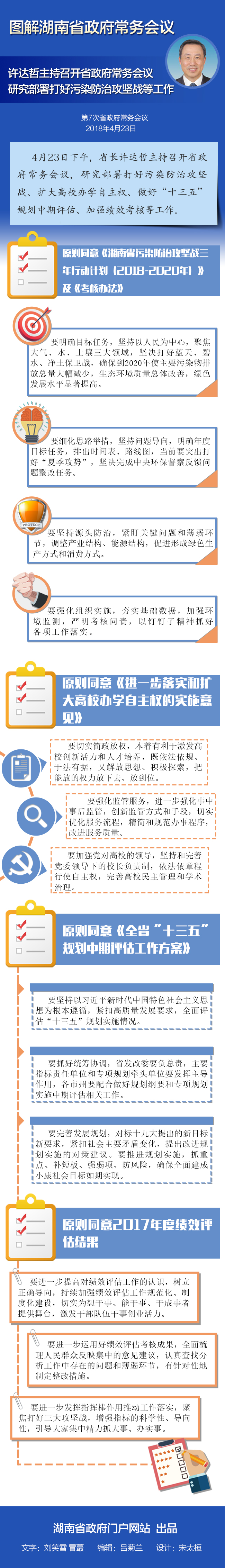 【图解】4月23日湖南省政府常务会议:研究部署打好污染防治攻坚战等工作 发布时间:2018-04-25 10:15 来源:湖南省人民政府门户网站 浏览次数: 次 【字体:小 大】 扫一扫在手机打开当前页 分享到: 打印正文