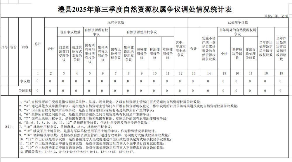 2025年第三季度澧县自然资源权属争议调处情况统计表