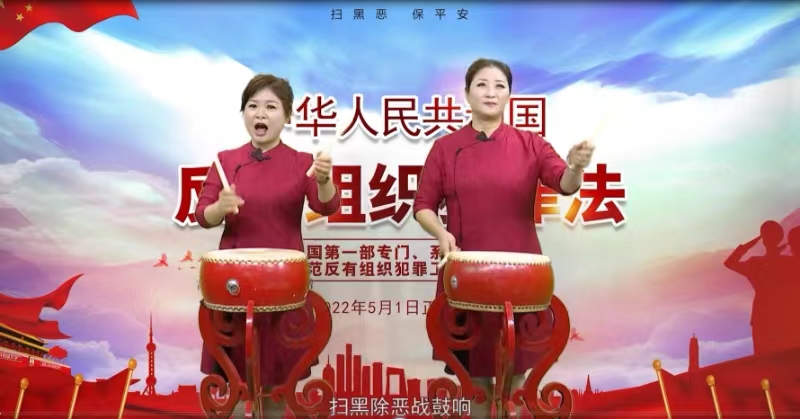 为深入学习宣传贯彻党的二十大精神和习近平法治思想,弘扬社会主义法治精神,推动法治文化与传统文化遗产深度融合,澧县艺术研究所创作了鼓盆歌《扫黑除恶颁法典 法治春风暖民心》。该作品以国家级非物质文化遗产——常德市澧县鼓盆歌为载体,采取2人击鼓说书、对话表演的形式,将非遗与法治文化有机融合,将有组织犯罪的类型、打击方式方法、犯罪后果以及未成年人犯罪等方面的知识,用群众耳熟能详的本土特色方言,融入说词唱段,娓娓唱来,让群众在欣赏本地特色优秀非遗传统文化的同时,了解有组织犯罪,提升全民法治意识和水平。同时体现了党和国家扫黑除恶的坚定决心,彰显“民生无小事,枝叶总关情”的法律温度。
