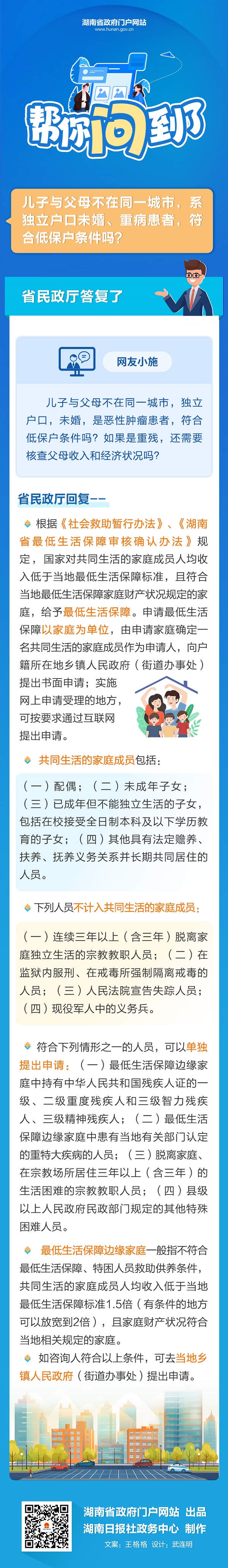 儿子与父母不在同一城市,系独立户口未婚、重病患者,符合低保户条件吗?帮你问到了!
