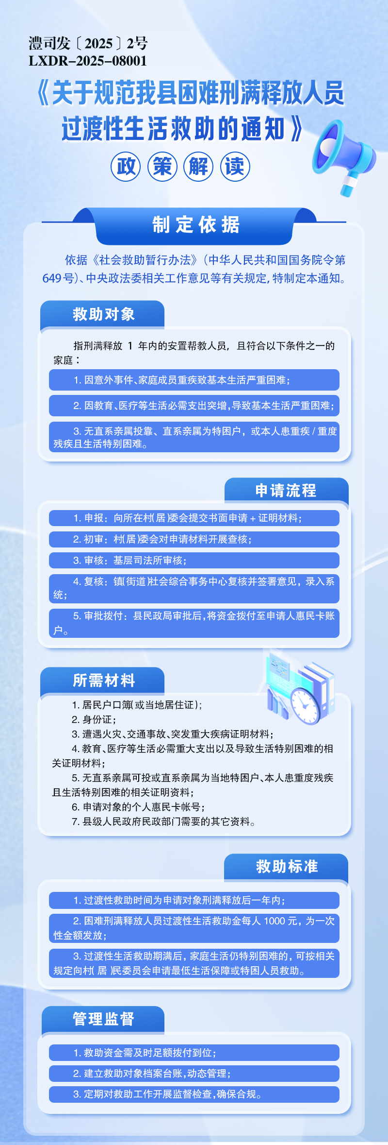 图解:澧县司法局《关于规范我县困难刑满释放人员过渡性生活救助的通知》的政策解读