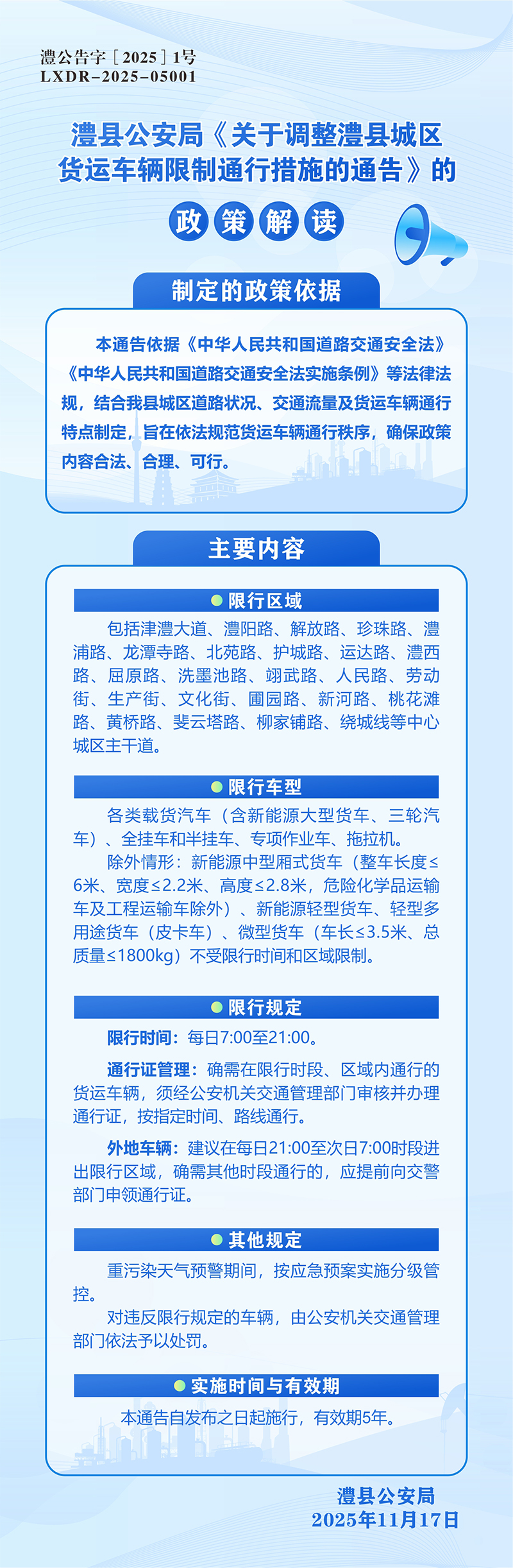 图解:澧县公安局《关于调整澧县城区货运车辆限制通行措施的通告》的政策解读
