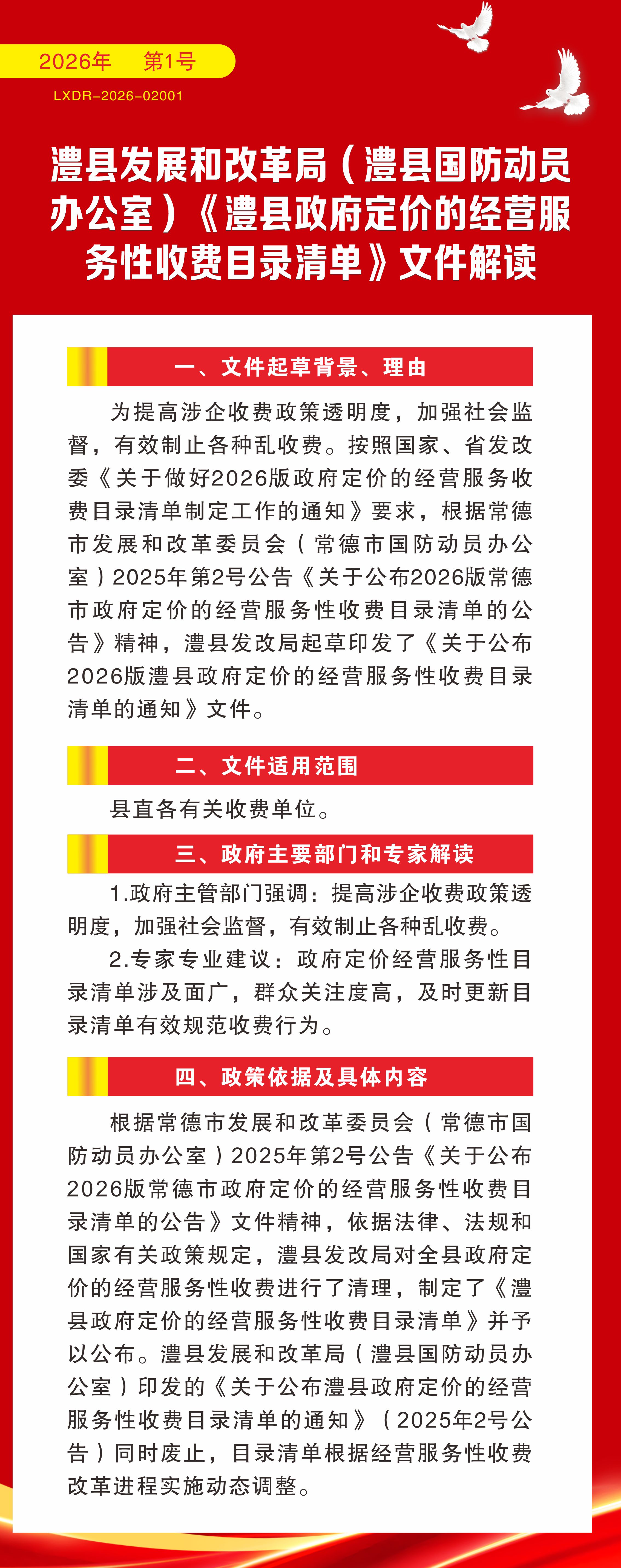 图解:澧县发展和改革局(澧县国防动员办公室)关于《澧县政府定价的经营服务性收费目录清单》文件解读