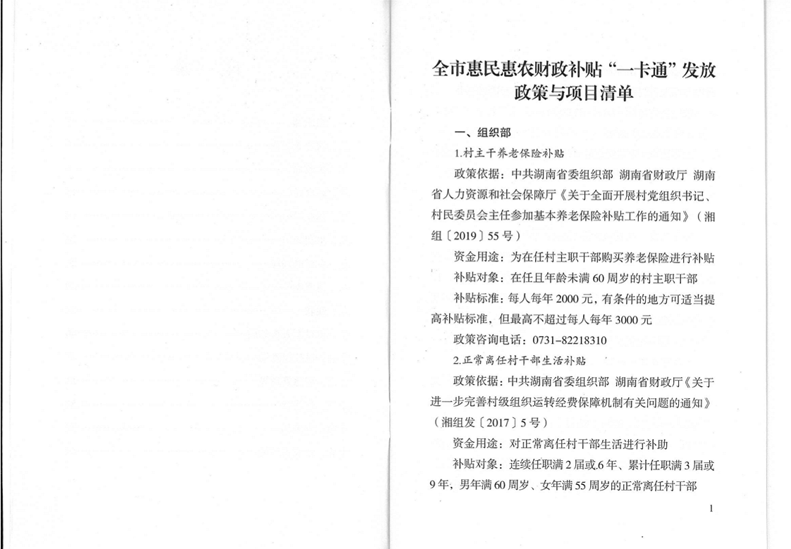2021年常德市惠民惠农财政补贴“一卡通”发放政策与项目清单