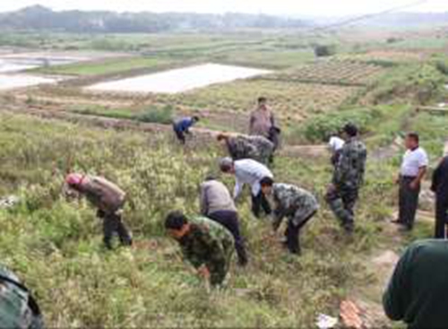 为提高干部群众的防灾避灾意识及汛期救援能力,5月13日上午8点半,宜万乡在蔡家坡水库前举行了2015年度防汛抢险及山洪灾害安全转移演习,全体机关、站所干部,派出所民警、卫生院职工及全乡9个村居的建制干部和部分村民参加演习。在演习前,乡防汛抗旱指挥所副指挥长周凤珍根据防汛抗灾手册,做了演习动员报告,并明确了人员分工,落实了各方值班示警责任。随后,由乡党委书记钟小东带头,对蔡家坡水库周边杂草进行了清理。
