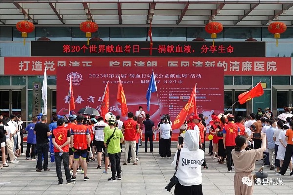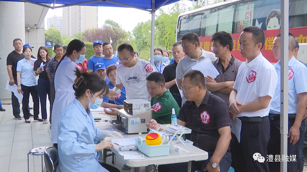 6月13日,澧县组织医务工作者、企业职工、外卖员、社会公益组织等各行各业的200多名志愿者在县人民医院举行第五届“满血行动派公益献血周”活动。
