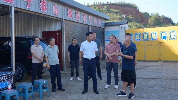 ▲王启武一行在澧县吉祥烟花批发公司督导大气污染防治烟花爆竹专项整治行动工作