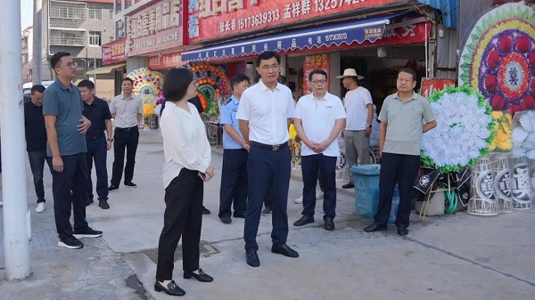 ▲王启武一行在澧阳街道黄桥社区桥头民俗店督导大气污染防治烟花爆竹专项整治行动工作