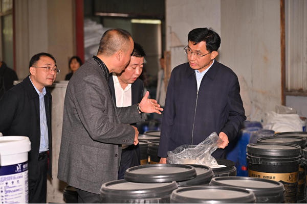 ▲王启武一行在湖北佳源美新型建材有限公司考察