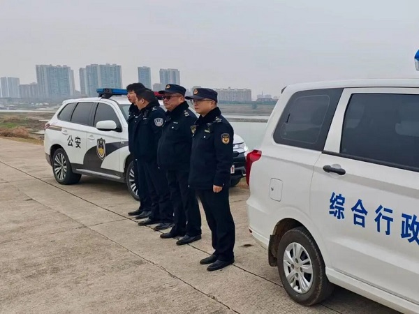 (联合执法小组在澧水大堤上巡逻)