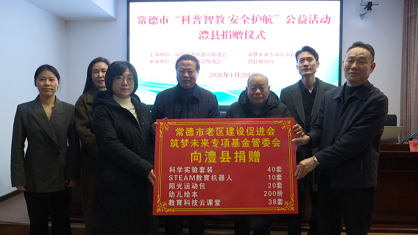 1月29日下午,常德市老区建设促进会联合筑梦未来专项基金管委会在澧县举行“科普智教 安全护航”公益活动捐赠仪式。常德市老区建设促进会会长刘春林,副县长吴雅倩,筑梦未来专项基金管委会执行副会长贾怀山参加。