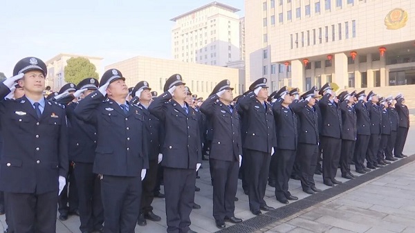 上午八点半,全体人员整齐列队,伴随着《中国人民警察警歌》,警旗冉冉升起,全体民警庄严敬礼,在嘹亮的警歌声中坚定忠诚与担当。随后,梁华带领全体民警重温入警誓词,铿锵誓言在广场上空久久回荡。